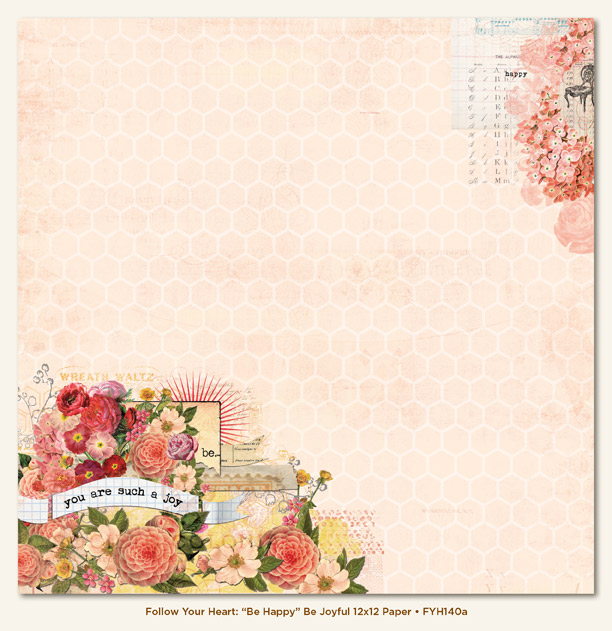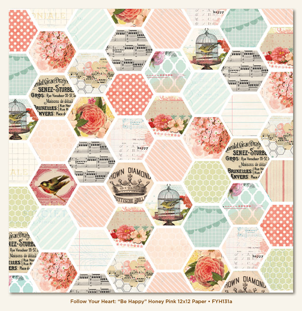 "be happy" is aqua, champagne, ballet pink, kraft & yellow mixed with vintage music papers! Love the 12 double sided papers in each color scheme.